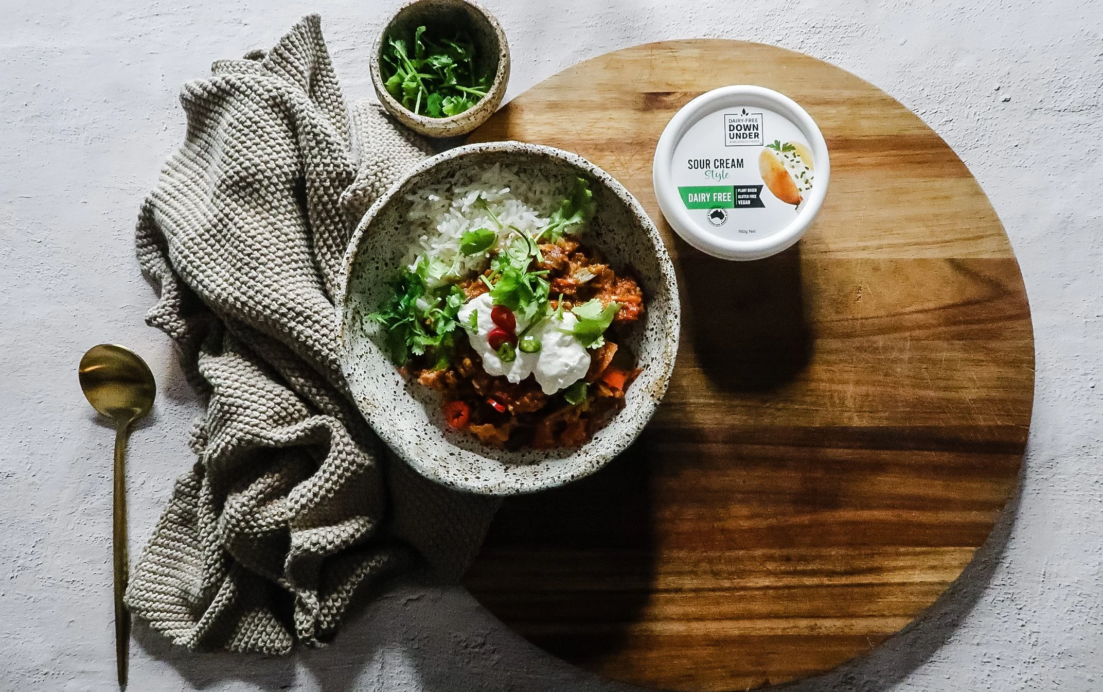 Hearty, satisfying, and just enough heat – heat that’s gloriously tempered with a big dollop of dairy-free sour cream, this meal will quickly become a household favourite.